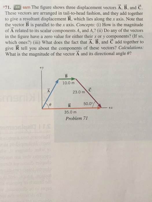 Jan 10 2014. The three displacement vectors in the drawing have magnitudes of A 500 m B 500 m and C 400 m. So lets first find the x and y components of the three vectors.